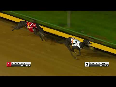Inclement weather looked to have taken the edge off the clock as Harrison-Dawson winner Rapaki Rocks ran 29.51sec in the first match race, a time that had remained the benchmark as attention shifted to the final match of the night, the eagerly anticipated contest between Wow She’s Fast and Big Opal Rocks.